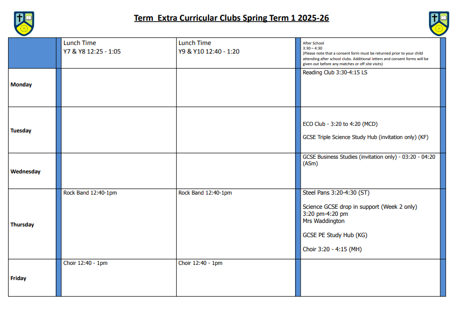 If you have any queries please do not hesitate to contact the school office.